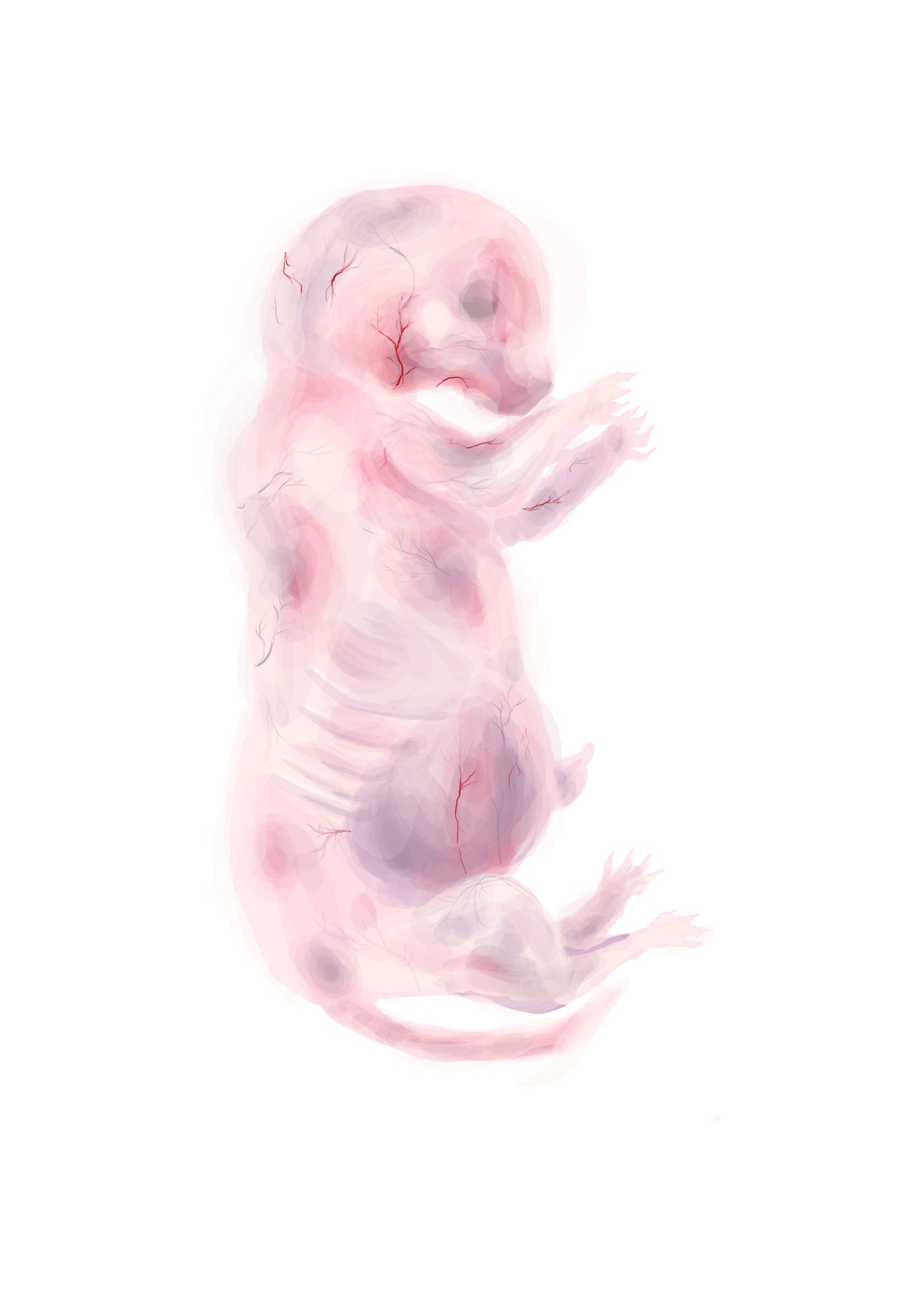 5x7 inch Fetus Art Print Cow, Cat, Pig, Mouse