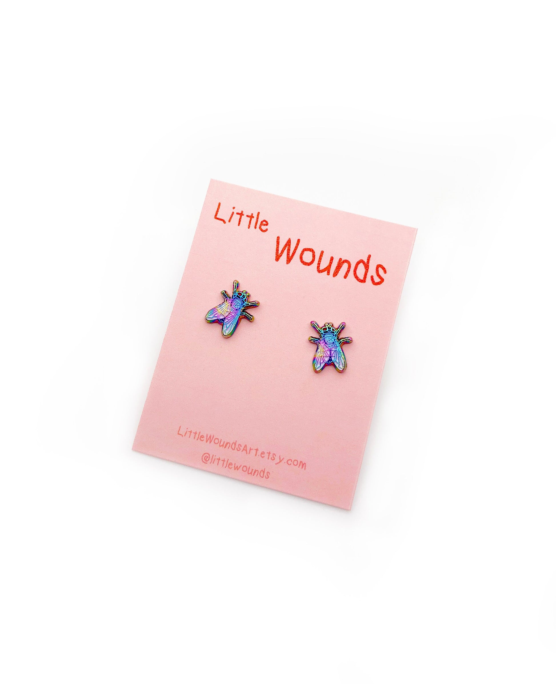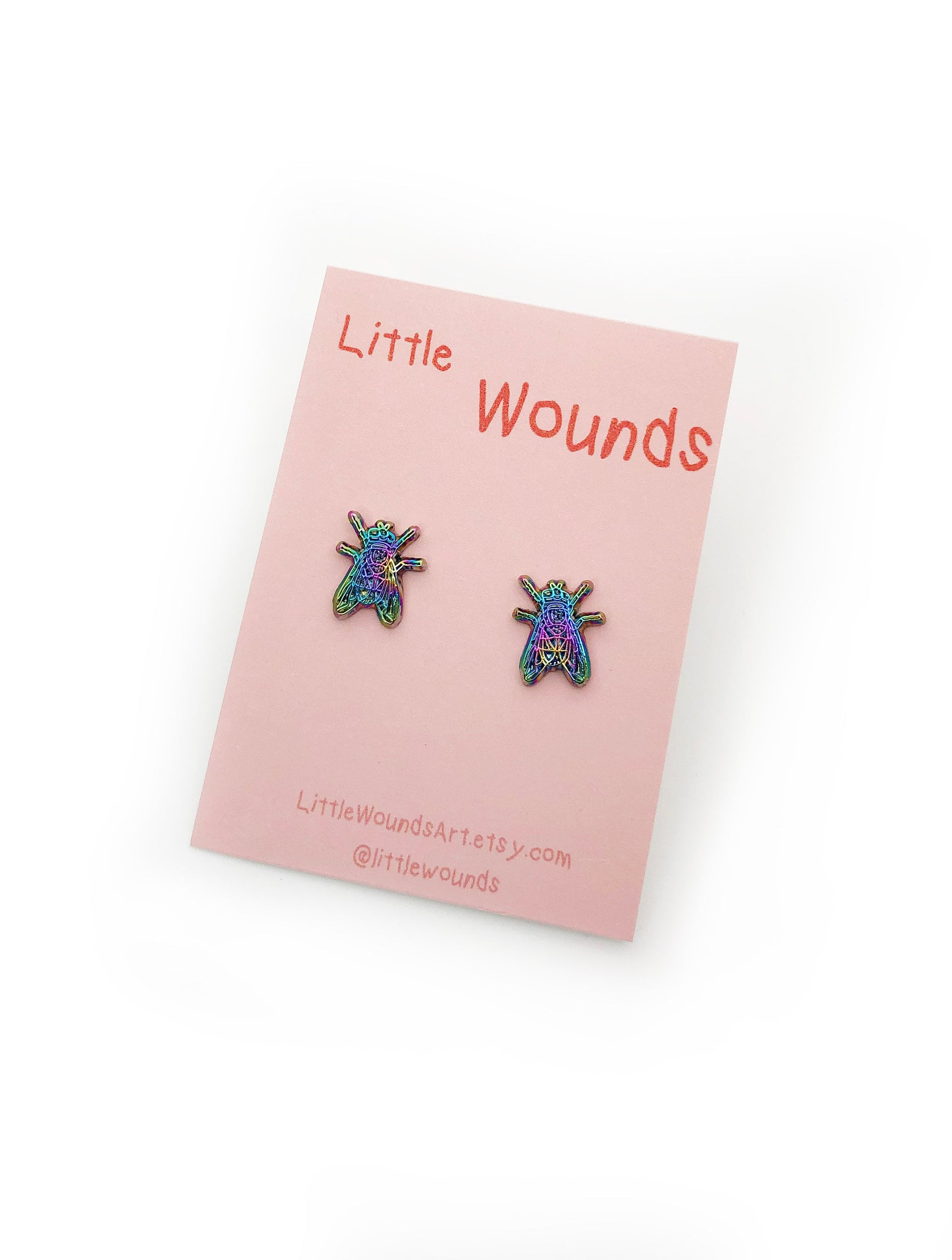Mimicking the iridescence of an actual blue bottle fly, these Blue Bottle Fly earrings add the perfect touch of color for your lobes. There is some slight color variation between earrings, which is depicted in the product images. Some have a blue/purple cast, and others a green/yellow. Earrings are paired based on these variations and will be similar in their color cast.